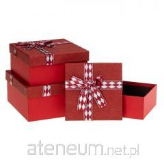 Pudełko prezentowe z kokardą 3szt czerwony ROZETTE
