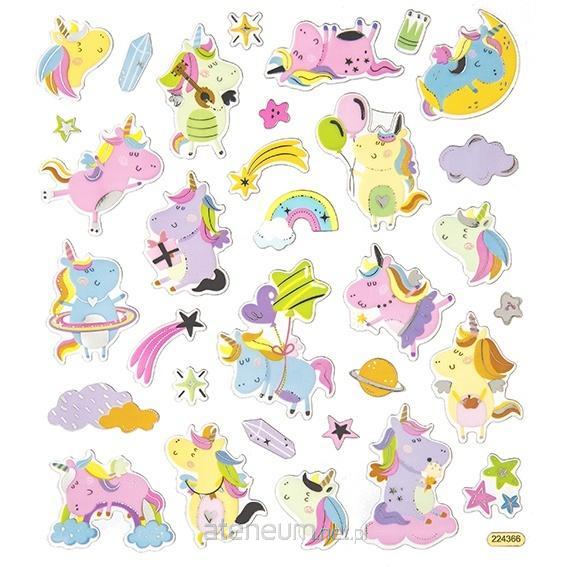 Foliowe naklejki z motywami uroczych muminkorożców czyli zwierzątek w typie muminków z rogiem i grzywą jednorożca.