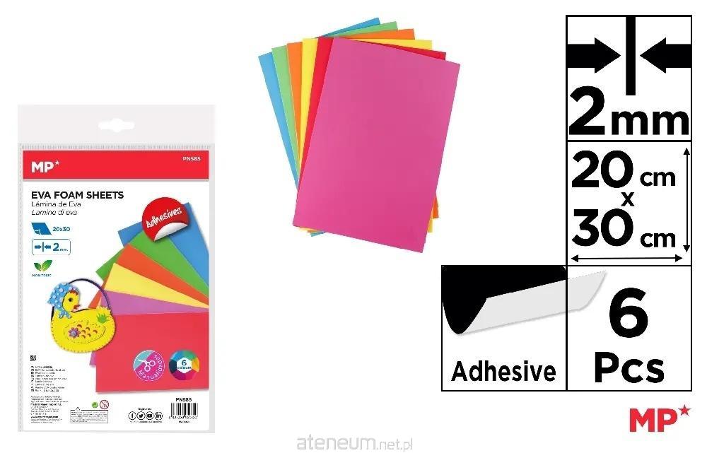 Pianka samoprzylepna EVA 2mm 6 kolorów 20x30cm 6 arkuszy MP