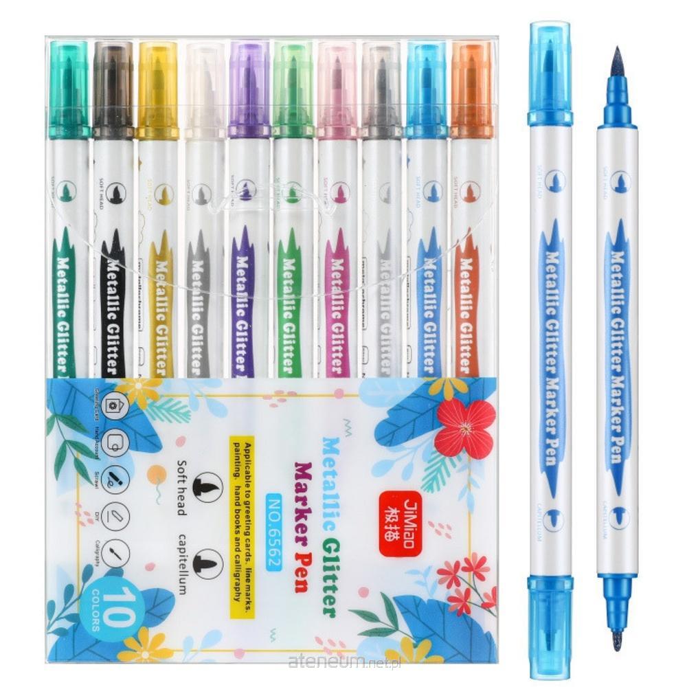 METALICZNE DWUSTRONNYM PISAKÓW Z BROKATEM - ZESTAW 10 SZTUK Wprowadź kreatywność na nowy poziom z zestawem Metalicznych Pisaków z Brokatem! Wysokiej jakości pisaki oferują intensywne, wyraziste kolory z metalicznym połyskiem oraz subtelnym brokatowym efektem, który nadaje każdemu projektowi wyjątkowy blask. Dzięki precyzyjnym końcówkom, doskonale nadają się do szerokiego zakresu zastosowań - od projektów artystycznych, przez kaligrafię, aż po rękodzieło i dekorowanie różnorodnych przedmiotów. Pisaki te zapewniają pełną kontrolę nad każdym ruchem, a ich metaliczny połysk wyróżnia się na tle tradycyjnych kolorów, tworząc unikalne efekty wizualne. Subtelny brokat dodaje głębi i przyciąga wzrok, sprawiając, że Twoje prace nabierają zupełnie nowego wymiaru. Te metaliczne pisaki z brokatem są idealnym wyborem dla artystów, dzieci i dorosłych, którzy chcą dodać blasku i kreatywności swoim projektom. Doskonale sprawdzą się w szkołach, na warsztatach, a także w domowych kreatywnych projektach, wprowadzając estetykę do każdego dzieła. SPECYFIKACJA: Kolory: Zestaw zawiera 10 różnych metalicznych odcieni, które dodadzą blasku każdemu projektowi. Rodzaj tuszu: Szybkoschnący tusz z efektem brokatu, idealny do artystycznych zastosowań. Końcówka: Pisaki wyposażone są w dwie końcówki - jedną grubszą i jedną węższą, co pozwala na precyzyjne rysowanie i pisanie, dostosowując szerokość linii do indywidualnych potrzeb. Zastosowanie: Pisaki doskonałe do rysowania, malowania, pisania, kaligrafii, dekorowania kart, ceramiki, plastiku i innych powierzchni. Bezpieczeństwo: Nietoksyczne, bezpieczne dla dzieci i dorosłych. Wydajność: Łatwy przepływ tuszu, który zapobiega rozmazywaniu i zapewnia równomierne pokrycie. Wymiary opakowania: 17cm x 12,5cm x 1cm ZAWARTOŚĆ ZESTAWU: 10 metalicznych pisaków z brokatem Oryginalne opakowanie
