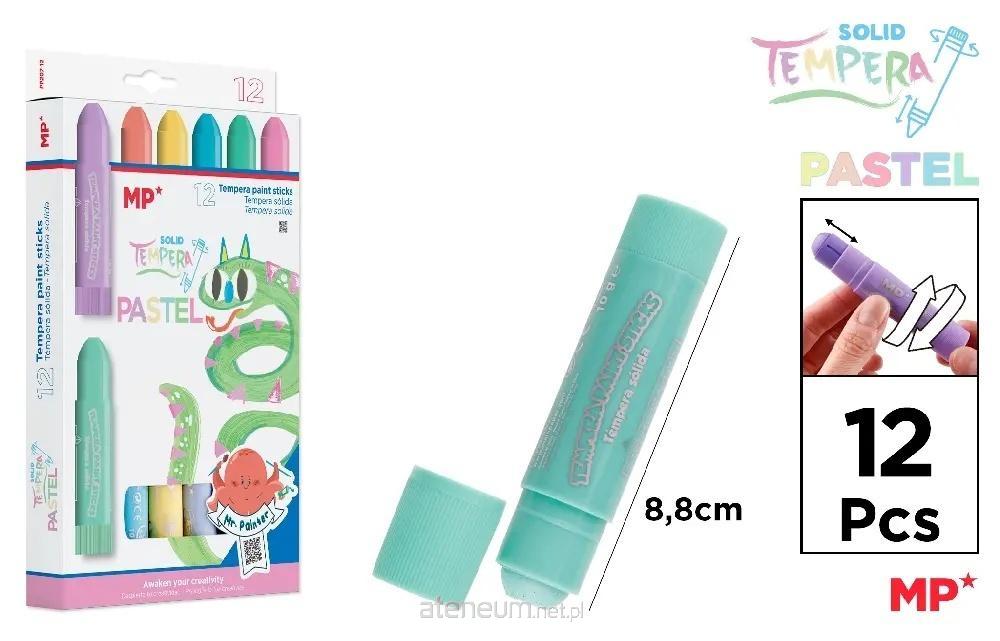 Farby tempera pastelowe w sztyfcie 12 kolorów 12szt./opakowanie MP