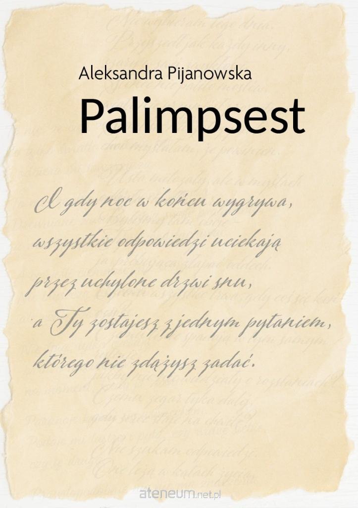 "Palimpsest" nie jest tytułem przypadkowym czy zgrabnym trikiem marketingowym. Przeciwnie, wskazuje na to, co niewątpliwie cechuje ten tom, jego zawartość, intencje Autorki. Swoista wielowarstwowość kolejny raz wykorzystywanego rękopisu tu jawi się symbolicznie w wielowarstwowości znaczeń, przenikaniu się przeszłości i teraźniejszości, wpływających na współczesne doświadczenia, pamięci i zapomnienia poprzez eksplorację śladów, jakie w ludzkiej pamięci pozostają po nich samych, jak i po zdarzeniach czy ideach. To także odniesienie niemalże wprost do procesu twórczego, w którym poprawki nie do końca "zakrywają" wcześniejsze wersje. Aleksandra Pijanowska inspiruje do odkrywania nowych perspektyw, poszukiwania sensu w codziennych wyzwaniach, oferując Czytelnikowi literacką przestrzeń, w której każdy może odnaleźć cząstkę siebie i liczyć na zrozumienie. Aleksandra Pijanowska - miłośniczka literatury pięknej, poezji oraz nauk psychologicznych. Swą wrażliwość artystyczną ubogaca głęboką refleksją nad ludzką naturą. Lubi wymykać się konwencjom, przekształcając prozaiczne historie w literackie opowieści pełne emocji i nadziei.