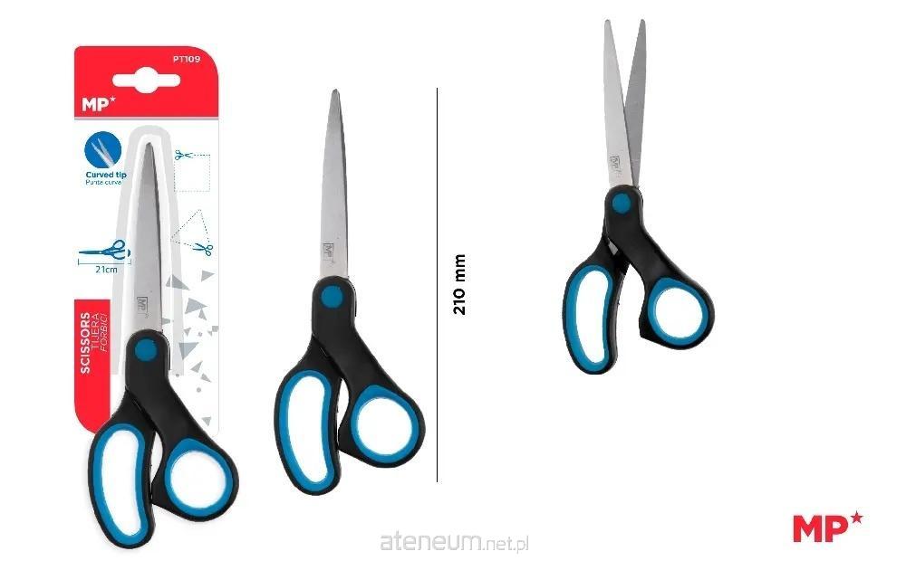 Nożyczki z ergonomicznym uchwytem z tworzywa sztucznego i ostrzami ze stali nierdzewnej. Zaokrąglone końcówki zapobiegające przebiciom. Ergonomiczny plastikowy uchwyt dla lepszego chwytu.