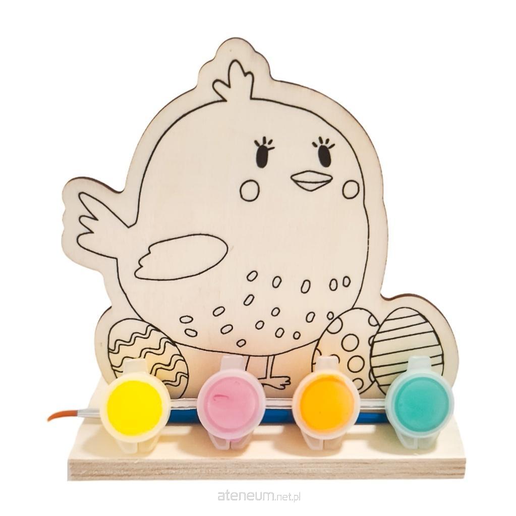 Zestaw DIY drewniania kurka z farbami Materiał: tworzywo sztuczne, drewno. W zestawie: drewniana ozdoba 1 szt., farbki 4 szt., pędzelek 1 szt.