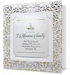Kartka Primus 0235 na I Komunię Świętą Kartki z serii Primus, to kartki najwyższej jakości, pięknie zdobione złotą lub srebrną folią, tłoczeniami, czy wycinkami laserowymi. W środku każdej kartki znajdują się dobrane do okazji życzenia, a do kartki dołączona jest dopasowana koperta. Cechy szczególne: wymiary: 175 x 175 mm (po złożeniu) zdobienia: dekoracje ze złotej folii, doklejane koraliki, tłoczenia koperta: dopasowana w komplecie, wnętrze kartki: życzenia w środku, okazja: Komunia