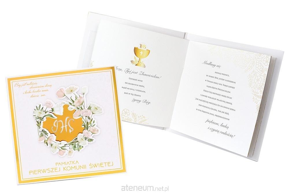 Pamiątka Pierwszej Komunii Świętej - Książeczka Passion Moments Books Q PMB Q-0008 Książeczki PMB Q to produkt wyjątkowy - pięknie wydany, elegancki, zdobiony złotą oraz perłową folią, z kolorowym wnętrzem z pięknymi grafikami i cytatami oraz życzeniami i miejscem na osobistą dedykację. Na wewnętrznej stronie okładki wklejona jest specjalna, nieduża koperta, w której można przekazać kartę podarunkową lub banknot. Książeczka PMB Q Kukartka to idealny prezent na wyjątkową okazję, jaką niewątpliwie jest Pierwsza Komunia Święta. Cechy szczególne: Format: 20 x 20 cm zdobienie: złota oraz perłowa folia wnętrze: kolorowe, z grafikami, cytaty, miejsce na dedykację i wpisanie miejsca/godziny uroczystości, gratis: koperta na drobny upominek wewnątrz, okazja: komunia, Pierwsza Komunia Święta.