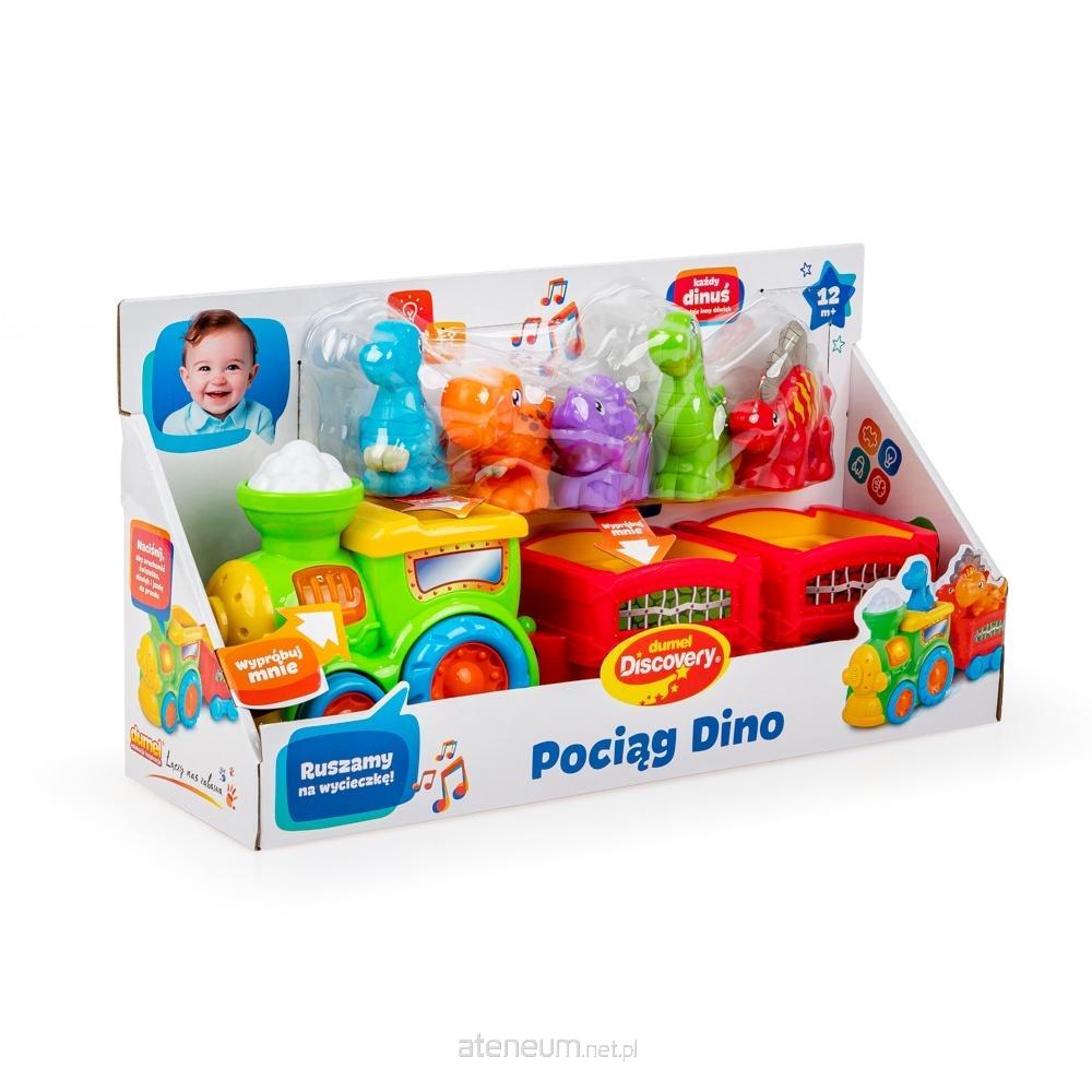 Rycząca piątka wesołych dinusiów jedzie na wycieczkę! Sprawdź jaki odgłos wydaje każdy z nich, umieszczając dinozaury w odpowiednich miejscach. Na boku lokomotywy znajduje się przycisk. Gdy go naciśniesz, zacznie świecić, z głośnika zabawki popłyną realistyczne dźwięki, a pociąg pojedzie do przodu. Naciśnij przycisk ponownie, aby usłyszeć wesołą melodię.