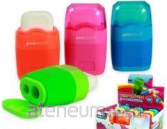 Temperówka podwójna w kształcie prostopadłościanu, z pojemniczkiem na strużyny. Wykonana z tworzywa. Przezroczysty pojemnik pomaga opróżnić temperówkę we właściwym momencie. Wieczko nie posiada zamykanych otworów ostrzących. Przeznaczona jest na kredki i ołówki o średnicy 8 i 11 mm.