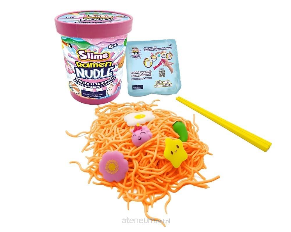 Zmień makaron w rozciągliwe slime! Przenieś się do kreatywnej kuchni i zamień zwykły makaron w niesamowicie rozciągliwe slime! Dzięki Slime Ramen Nudle dzieci mogą wcielić się w rolę małych kucharzy i stworzyć własne, kolorowe danie pełne zabawy. Wystarczy połączyć specjalny proszek z wodą, aby uzyskać bazę slime przypominającą prawdziwy ramen. Następnie dodaj rozciągliwe nudle oraz urocze, miękkie dodatki, które urozmaicą Twoje kulinarne dzieło. Voila gotowe!