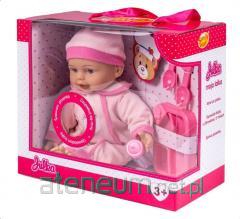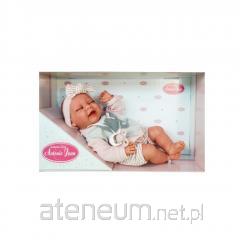 Lalka hiszpańska płacząca Beni z mufką 42 cm Antonio Juan 16383 Jeśli mała wielbicielka wyjątkowych zabawek marzy o hiszpańskiej lali przyjaciółce, idealnej do przytulania, przebierania i czesania, brunetka o imieniu Beni z pewnością wzbudzi zachwyt. Model 16383 z miękkim brzuszkiem, od renomowanego producenta Antonio Juan ma 42 cm wysokości i przypomina małą dziewczynkę. Po wyjęciu smoczka płacze i mówi: mama, papa. Stale otwarte, brązowe oczy o głębokim spojrzeniu opatrzone są długimi rzęsami i delikatnie namalowanymi brwiami. Lalka hiszpańska Antonio Juan Beni 16383 w modnym stroju Wykonana z wysokiej jakości, przyjemnego w dotyku winylu lalka hiszpańska Antonio Juan 16383 posiada materiałowy brzuszek wypełniony miękką wyściółką. Beni ubrana jest w oryginalny, szyty ręcznie strój, który można zdjąć: muślinowa pudrowa bluzeczka i krótkie spodenki ładnie prezentują się w komplecie z ciepłą czapeczką, pluszowym szaliczkiem, mufką i skarpetkami, zestaw uzupełnia specjalny smoczek magnetyczny na tasiemce. Atonio Juan Beni to unikalna lalka hiszpańska na prezent Lalka Beni 42 cm posiada wszystkie wymagane certyfikaty bezpieczeństwa. Jest przeznaczona dla dzieci od 3 roku życia. Wyprodukowana została w całości w Hiszpanii. Zapakowana w biało-różowe, ozdobne pudełko z wieczkiem, świetnie sprawdzi się jako oryginalny prezent dla wielbicielki wyjątkowych zabawek.
