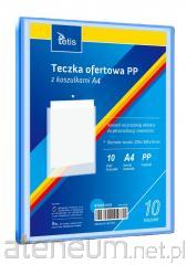 Teczka ofertowa PP z koszulkami. Posiada grzbiet i kieszeń opisową na przedniej okładce, format A4 Teczka posiada 13 przegród. Wymiary teczki: 330x245x35 mm, grubość tworzywa PP: 0,50 mm. Dostępna w pięciu kolorach (niebieski, czerwony, pomarańczowy, żółty, czarny). Opakowanie: folia 1 szt.
