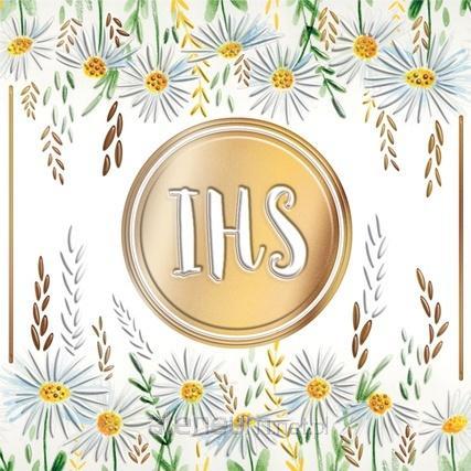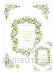 Karnet A5 z klapką Komunia. Stokrotka i merta