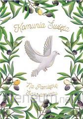 Karnet A5 Komunia. Gołąb z oliwkami