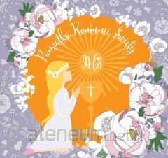 Książeczka Komunijna w formacie 21,5 x 21,5 cm. Oprawa twarda złocona. Autorskie ilustracje, własny dobór tekstów. Książeczka 12-nasto stronicowa z kopertą na pieniążki.
