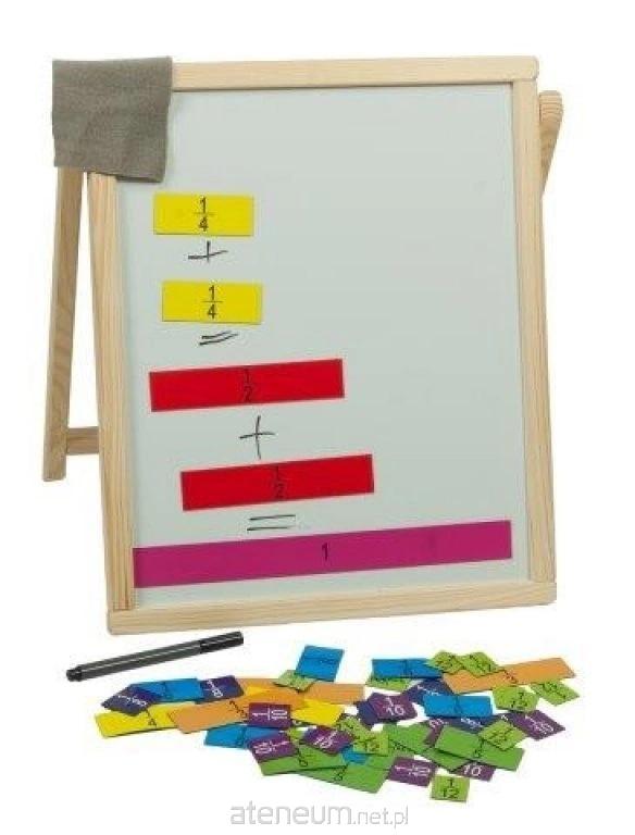 Drewniana magnetyczna rozkładana tablica, z kompletem magnetycznym - ułamki. Zestaw zawiera marker