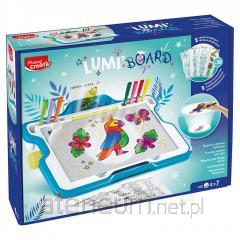 Wisząca drewniana, jasnofioletowa magnetyczno-kredowa tablica z podstawą na kredę. Podstawa przekładana na każdą ze stron. Wyposażona w gąbkę oraz kredę. Zestaw zawiera marker suchościeralny
