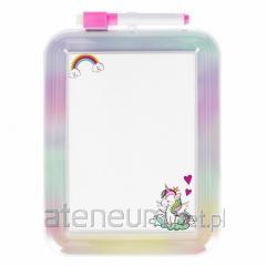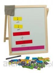 Obrotowa, suchościeralno-kredowo-magnetyczna kolorowa tablica z rolką papieru i liczydłem. Oprócz liczydła i papieru wyposażona w gąbkę i kredę. Marker w zestawie.