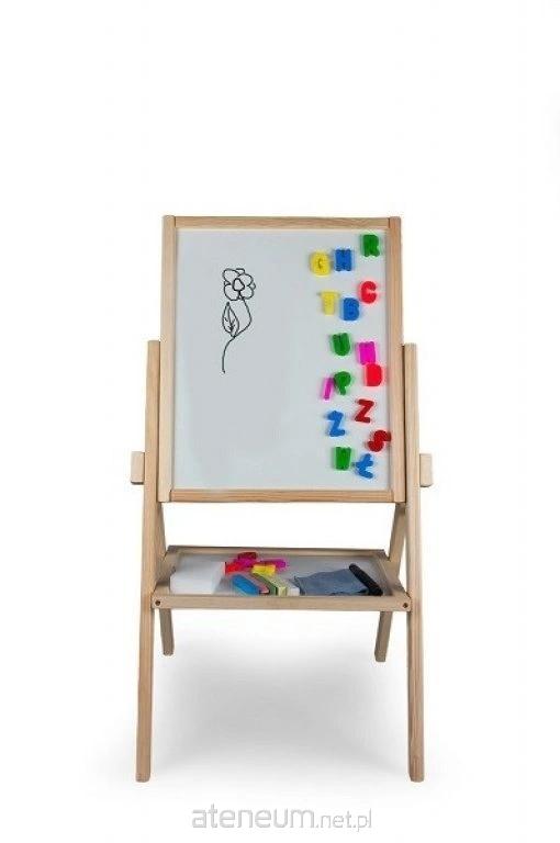 Obrotowa, suchościeralno-kredowo-magnetyczna naturalna tablica. Wyposażona w gąbkę i kredę. Tablica zawiera marker.