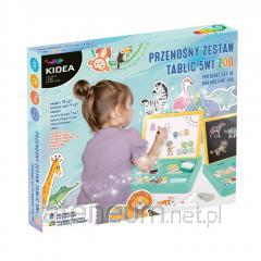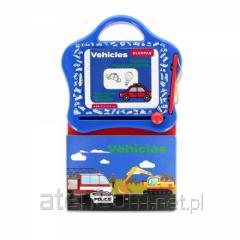 Drewniana dwustronna, magnetyczna, rozkładana tablica Z LICZYDŁEM. Wyposażona w zegar, a w nim ruchome wskazówki. Posiada jednorzędowe liczydło, zawierające 5 różnokolorowych kulek. Gąbka i kredę. Do tablicy dołączany jest marker.