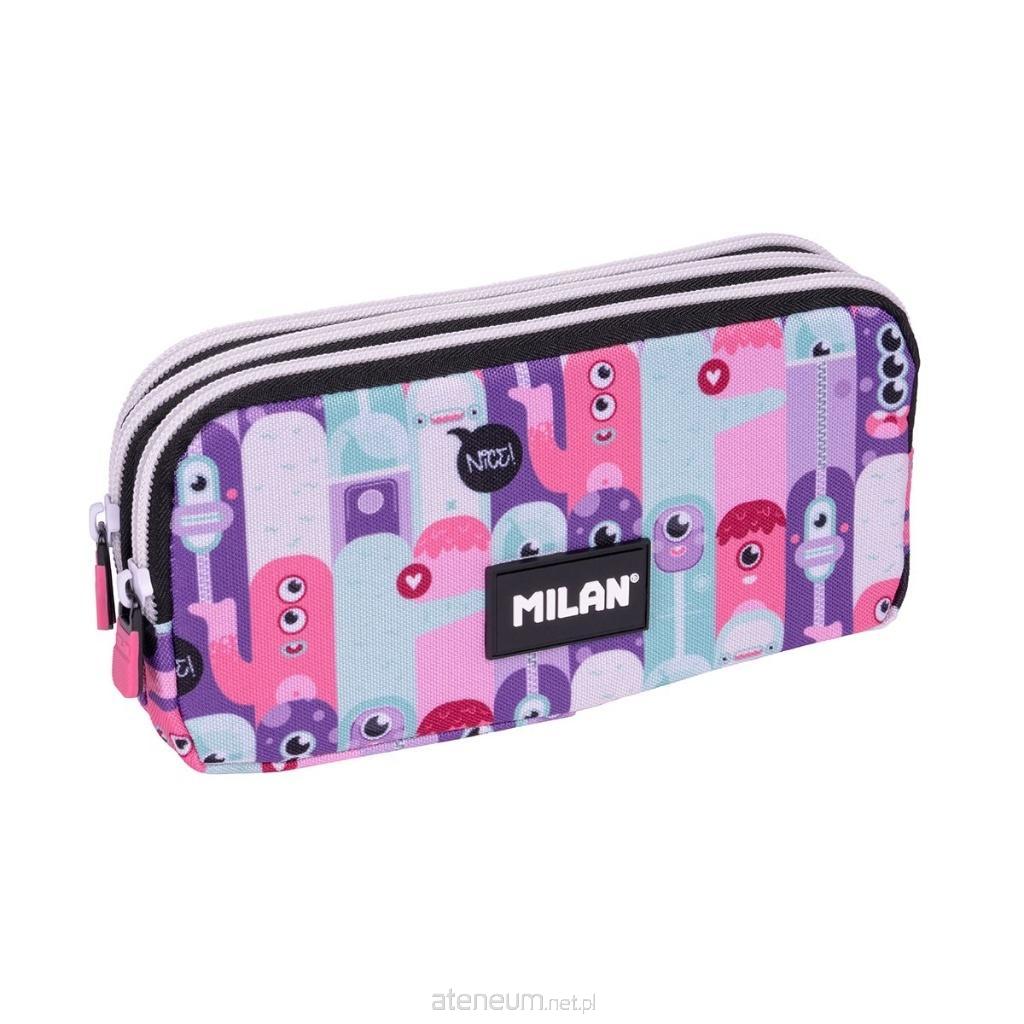 Piórnik saszetka MILAN z 3 szerokimi przegródkami ułatwiającymi organizację zawartości. Kolekcja Aliens 2 z wesołym, różowo-liliowym wzorem przedstawiającym ułożonych w stos kosmitów, te same postacie, co drewniana zabawka Aliens Tower. Wewnątrz czarna podszewka. Materiał zewnętrzny i wewnętrzny 100% poliester. Wymiary: 22 x 11 x 6,5 cm