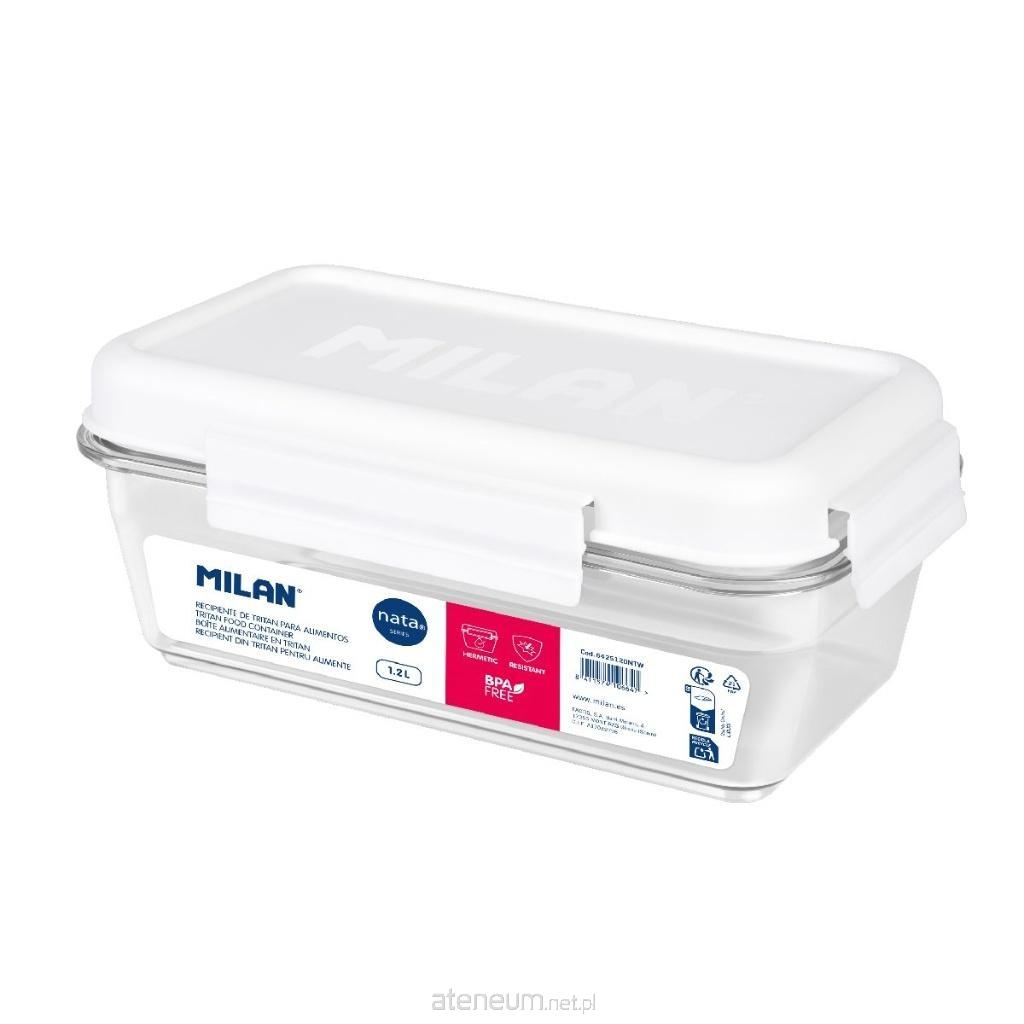 Przezroczysty prostokątny pojemnik na żywność wykonany z tworzywa sztucznego Tritan. Biała pokrywa z hermetyczną uszczelką. Trwała, nadająca się do ponownego użycia i recyklingu. Odporny na temperatury od -20C do 80C. Nie zawiera BPA. Nie zatrzymuje zapachów i smaków. Nadaje się do kuchenki mikrofalowej (maks. 80C) z otwartą pokrywą, aby wypuścić parę. Nadaje się do zamrażarki. Nadaje się do mycia w zmywarce (maks. 80C). Pokrywy i pojemniki można łatwo ustawiać jeden na drugim. Seria MILAN nata® 624 inspirowana jest oryginalną kolorystyką i designem gumek MILAN produkowanych w Hiszpanii od 1918 roku. Wymiary: 23 x 12,5 x 9,2 cm. Pojemność: 1,2 L.