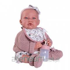 Animal Reborn - winylowa małpka Lola Asi 0608060 32 cm Jedyna w swoim rodzaju, pachnąca wanilią winylowa małpka hiszpańska o wysokości 32 cm to ekskluzywny projekt z kolekcji Animal Reborn, skierowany do kolekcjonerów oraz dzieci w wieku powyżej 3 lat. Ubrana w wysokiej jakości, szytą ręcznie modną bluzę z kapturem Lola 0608060 z pewnością doda luksusu każdej kolekcji zabawek. Hiszpańska małpka Lola 0608060 Zwracająca uwagę realistycznym wyglądem, dopracowana w najdrobniejszym szczególe małpka renomowanej hiszpańskiej marki Asi wykonana została z miękkiego, gładkiego winylu. Zwracają uwagę brązowe oczy o głębokim spojrzeniu. Przegubowe kończyny można ułożyć dowolnie. Głowa jest również ruchoma, dzięki czemu zabawka może przyjmować różne pozy. Odkryj detale stroju małpki hiszpańskiej Lola 0608060 marki Asi! Małpka Lola 0608060 prezentuje się modnie, ponieważ ubrana w żółtą bluzę z kapturem, uszytą z wysokiej jakości tkaniny o ciekawej teksturze. Długie rękawy można podwinąć, a kaptur zawiązać. Małpka Lola ma założoną pieluszkę oraz przypinany smoczek na łańcuszku. Zachęca dzieci do wcielania się w rolę troskliwego opiekuna. Jest także atrakcyjną towarzyszą codziennych przygód. Świetnie sprawdza się jako unikalny prezent. Zapakowana jest w oryginalne, eleganckie różowo-białe pudełko z wieczkiem. Obwód szyi: 13,50 cm Obwód klatki piersiowej: 20,00 cm Obwód głowy 25,50 cm OSTRZEŻENIE! Nieodpowiednie dla dziecka poniżej 3 roku życia. Małe części. Zgodne europejskimi normami bezpieczeństwa CE. Produkt oryginalny, jego kopiowanie jest zabronione. Zachowaj oryginalne opakowanie jako dowód pochodzenia produktu. UWAGA. Przed oddaniem zabawki dziecku należy usunąć i wyrzucić wszystkie zabezpieczenia. Kolory, wzory, zawartość produktu mogą się różnić.