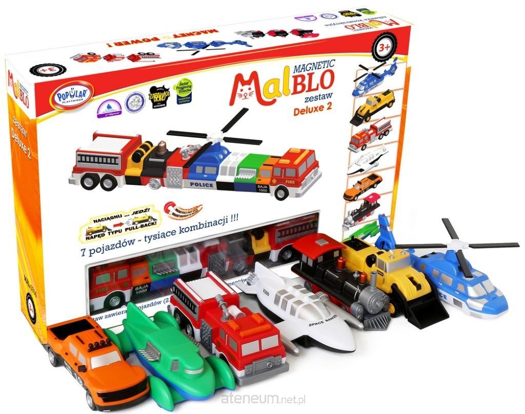 Seria MalBlo MAGNETIC to modułowa kreatywna zabawka. Opatentowany, innowacyjny system magnetyczno-zatrzaskowy pozwala na łatwe łączenie i rozłączanie poszczególnych modułów umożliwiając budowanie przeróżnych pojazdów. Łącząc ze sobą moduły w celu stworzenia nowych pojazdów dzieci rozwijają swoją wyobraźnię przestrzenną i umiejętność koncentracji. Projektowanie i budowanie własnych form z klocków MalBlo MAGNETIC Deluxe wspaniale rozwija kreatywność i sprawność manualną. Łącząc i rozłączając moduły, które mają odpowiednią siłę wiązania, dzieci mogą rozwijać także siłę swoich rąk. Seria produktów MAGNETIC składa się z dwóch zestawów DELUXE i sześciu zestawów tematycznych. Wszystkie zestawy są kompatybilne, a pojazdy można z sobą łączyć na dowolne sposoby!!!