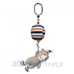 Funkcje: po naciśnięciu na przycisk słychać kołysankę, serduszko miga na czerwono, szeleści, grzechotka, nóżki jako gryzaki, dł. zabawki 33 cm, 0+