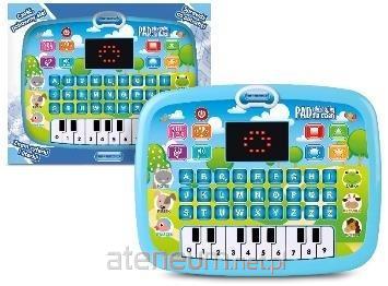 Pad zawiera: klawiaturę z alfabetem, pianinko z cyframi, przyciski zwierząt, przyciski kształtów/kolorów, regulację głośności, wyświetlacz LED, przycisk piosenek, przycisk aktywujący tryb quiz Pad prosi dziecko o wskazanie danej litery, kształtu lub zwierzątka, wymiary opakowania: 25 x 20 x 3,5 cm, baterie: 3 x AA 1,5 V załączone demonstracyjne, 3+