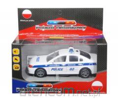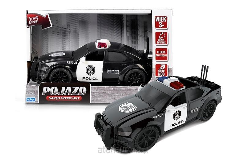 W zestawie: auto dł. 19 cm. Funkcje: 3 sygnały dźwiękowe: 2 syreny alarmowe, pościg, światła kogutów, napęd frykcyjny, otwierane drzwi. Pozostałe informacje: wym. opakowania: 22 x 14 x 9,5 cm., baterie: 3 x AG13/LR44 załączone demonstracyjne, 3+