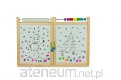 Obrotowa, suchościeralno-kredowa tablica z rolką papieru i liczydłem. Kolory tablicy: na kredę czarny, na marker żółty. Oprócz liczydła i papieru wyposażona w gąbkę i kredę. Marker w zestawie. .