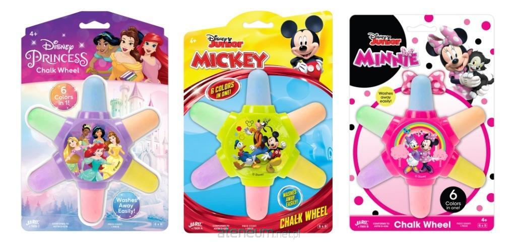 6 kolorowych kred umieszczonych na kółku, mix licencji Minnie, Mickey, Disney Princess, na blistrze, 4l+