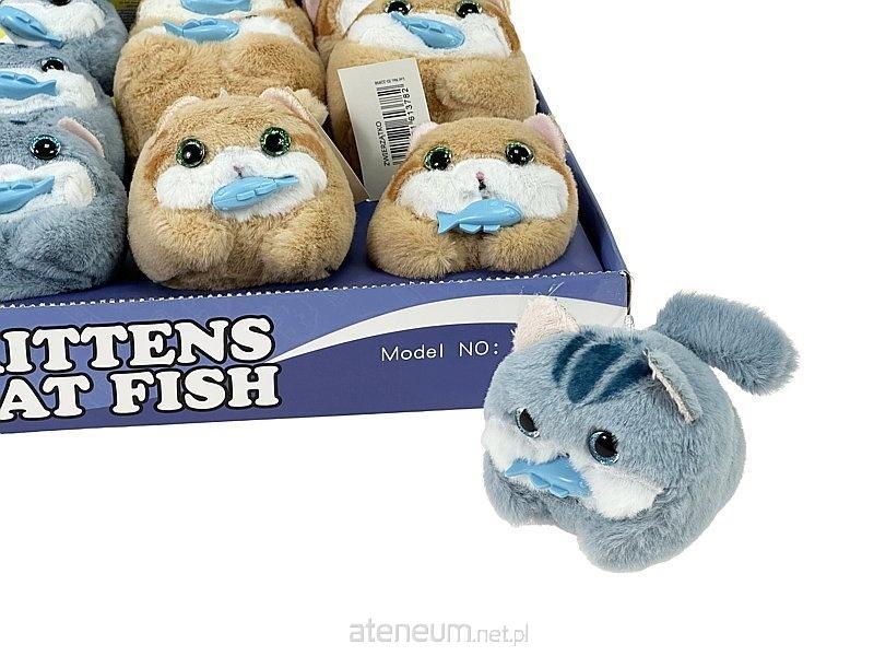Kotek z rybą machający ogonem pluszowy 13cm MIX