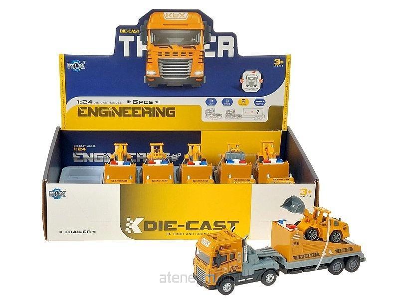 auto ciężarowe z lawetą i koparką, metalowe, 30x10,5x7cm, światło, dźwięk,