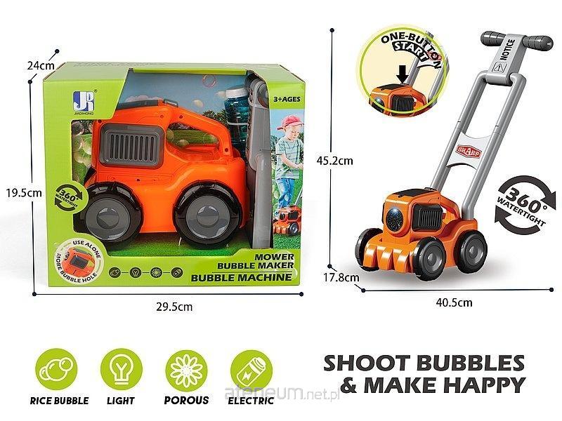 kosiarka z bańkami mydlanymi, na baterie, światło, wodoszczelna, wym.rozłożonej 45x40,5x18cm; 30x24,5x19,5cm, Box