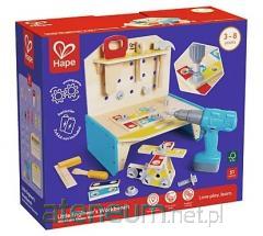 Warsztat marki Klein pochodzi z serii zabawek Bosch mini powstałej na licencji firmy Bosch, dlatego też narzędzia wchodzące w jego skład są wiernymi kopiami faktycznie istniejących narzędzi tej marki. W zestawie zapakowanym w duży zielony karton Klein, znajdziemy aż 82 elementy konstrukcyjne i narzędzia do zabawy. Głównym elementem tego zestawu jest z pewnością kremowo-zielony stół warsztatowy ze ścianą z haczykami i czerwonymi półkami na narzędzia. Ten warsztat zapewnia wyjątkowo dużo miejsca do zabawy, ponieważ blat ma aż 68 cm szerokości. Dodatkowo znajdują się w nim otwory do wbijania dołączonych (plastikowych) gwoździ i wkręcania śrub. Narzędzia będące częścią tego warsztatu to czerwone imadło, młotek, kombinerki, piła, pilnik, śrubokręt i ścisk stolarski. Zabawki te mają ciemno-zielone rączki, a ich wygodny uchwyt ma dodatkowo czarną profilowaną powierzchnię z logo Klein ułatwiającą utrzymanie narzędzia w dziecięcych dłoniach. Dodatkowo przy warsztacie znajdziemy jeszcze srebrny klucz płaski, poziomicę i kątownik, a także wiele innych drobnych elementów, jak śrubki, nakrętki, czy inne części konstrukcyjne do kreatywnej zabawy. Wszystkie elementy zestawu są wykonane z plastiku, pozbawione ostrych krawędzi i całkowicie bezpieczne dla dziecka. Zestaw został stworzony z dbałością o szczegóły i detale z wysokiej jakość materiałów, przez co wiernie naśladuje prawdziwe narzędzia i będzie służyć dzieciom przez długi czas. Dzięki warsztatowi dzieci w bezpieczny sposób będą mogły wcielić się w rolę majsterkowicza, zapewniając sobie realistyczne doświadczenie korzystania z wszystkich jego narzędzi. Dzieci uwielbiają naśladować rodziców wykonujących codzienne czynności domowe lub w nich uczestniczyć, jednak nie zawsze jest to możliwe ze względów bezpieczeństwa, a dzięki temu całkowicie bezpiecznemu dla dzieci, zabawkowemu warsztatowi z narzędziami każdy mały majsterkowicz może bezpiecznie robić to, co jego opiekunowie.