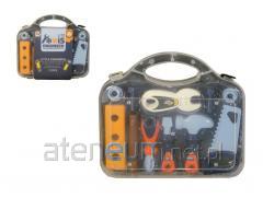 Skrzynka z narzędziami i wiertarko-wkrętarką Klein powstała na licencji Bosch, dlatego też narzędzia wchodzące w jej skład są wiernymi kopiami faktycznie istniejących narzędzi tej marki. Zestaw zapakowany jest w ciemno-zieloną pojemną skrzynkę na narzędzia. Skrzynka posiada żółtą wygodną rączką oraz dodatkową zawartość 7 elementów w komplecie. Głównym narzędziem skrzynki jest wiertarko-wkrętarka Bosch na baterie (KL 8567). Wiertarko-wkrętarka ma regulowane obroty w prawą i lewą stronę, włączane czerwonym przyciskiem, z boku zabawki, jak również dwie prędkości pracy, regulowane czerwonym przełącznikiem na czole urządzenia. Dodatkowo zabawka ma w komplecie cztery srebrne wymienne bity (wiertła), a także w w podstawie urządzenia białą diodę oświetlającą miejsce pracy. Zabawka jak prawdziwa ma wygodny uchwyt z gumową powierzchnią ułatwiającą utrzymanie zabawki w dziecięcych dłoniach. Wiertarko-wkrętarka podczas swojej pracy wydaje realistyczne dźwięki imitujące odgłosy pracy prawdziwego urządzenia. Ponadto w zestawie znajduje się piła ręczna, młotek, klucz francuski, dwie plastikowe deseczki z otworami do wkręcania śrub, a także 4 śruby z nakrętkami i 2 plastikowe gwoździe. Wszystkie elementy zestawu są wykonane z plastiku, pozbawione ostrych krawędzi i całkowicie bezpieczne dla dziecka. Dzięki wysokiej jakości wykonania śruby wkręca i wykręca się z dużą łatwością. Bawiąc się wiertarko-wkrętarką czy pozostałymi narzędziami skrzynki dzieci już od najmłodszych lat w bezpieczny sposób będą mogły wcielić się w rolę majsterkowicza, zapewniając sobie realistyczne doświadczenie korzystania z wszystkich jego części. Zestaw umożliwia maluchom kreatywną zabawę i doskonalenie umiejętności manualnych. Dzieci uwielbiają naśladować rodziców wykonujących codzienne czynności domowe lub w nich uczestniczyć, jednak nie zawsze jest to możliwe ze względów bezpieczeństwa, a dzięki tej całkowicie bezpiecznej dla dzieci, zabawkowej skrzynce z wiertarko-wkrętarką i narzędziami każdy mały majsterkowicz może bezpiecznie robić to, co jego opiekunowie. Zabawka wymaga użycia baterii, które nie są zawarte w zestawie.