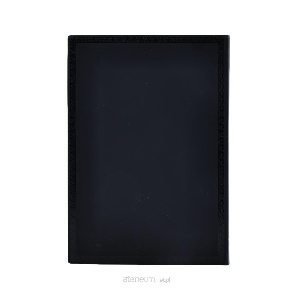 Klasyczna czarna okładka z delikatnie tłoczoną ramką na brzegu oprawy