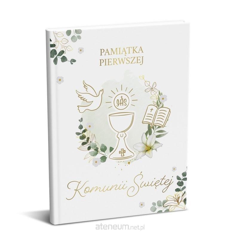 Książeczka z okazji I Komunii Świętej w formacie A5 wraz z kopertą w środku. Wyjątkowa książeczka upamiętniająca jeden z najważniejszych dni w życiu dziecka - Pierwszą Komunię Świętą. Elegancka i starannie wykonana pamiątka w formacie A5, ozdobiona złotymi detalami i delikatnymi ilustracjami nawiązującymi do sakramentu Eucharystii. Format: A5 (poręczny i elegancki), Kolorowe ilustracje w środku, które nadają całości wyjątkowego charakteru, Miejsce na osobiste wpisy - idealna do zachowania wspomnień z uroczystości, Koperta wewnątrz.