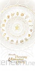 Książeczka z okazji I Komunii Świętej w formacie A5 wraz z kopertą w środku. Wyjątkowa książeczka upamiętniająca jeden z najważniejszych dni w życiu dziecka - Pierwszą Komunię Świętą. Elegancka i starannie wykonana pamiątka w formacie A5, ozdobiona złotymi detalami i delikatnymi ilustracjami nawiązującymi do sakramentu Eucharystii. Format: A5 (poręczny i elegancki), Kolorowe ilustracje w środku, które nadają całości wyjątkowego charakteru, Miejsce na osobiste wpisy - idealna do zachowania wspomnień z uroczystości, Koperta wewnątrz.