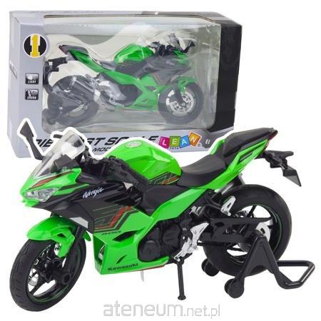 MOTOCYKL SPORTOWY METALOWY ZIELONY 1:12 Metalowy model sportowego motocykla to doskonały wybór dla kolekcjonerów, pasjonatów motoryzacji oraz dzieci, które uwielbiają dynamiczne pojazdy. Precyzyjnie odwzorowane detale, solidna metalowa konstrukcja oraz interaktywne elementy sprawiają, że model nie tylko świetnie się prezentuje, ale także oferuje realistyczne wrażenia podczas zabawy. Skrętna kierownica, amortyzowane zawieszenie i obracające się koła pozwalają na odtworzenie prawdziwej jazdy i manewrowania, co czyni go wyjątkowym dodatkiem do każdej kolekcji. Model został wyposażony w efekty świetlne i dźwiękowe, które są aktywowane dzięki zasilaniu 3x AG13 (w zestawie). Dodatkowe funkcje zwiększają realizm zabawy, sprawiając, że motocykl wygląda i brzmi jak prawdziwy pojazd. Dynamiczny, sportowy design w kolorze zielonym inspirowany jest klasycznymi motocyklami wyścigowymi, co dodaje mu autentycznego charakteru. Dzięki solidnej konstrukcji i dopracowanym detalom, model sprawdzi się nie tylko jako zabawka, ale także jako stylowa dekoracja na półce, biurku czy gablocie. Może być świetnym prezentem zarówno dla dziecka, które marzy o własnym motocyklu, jak i dla dorosłego fana sportowych maszyn. Łączy w sobie edukacyjną wartość i rozrywkowy charakter, dostarczając mnóstwo radości wszystkim miłośnikom dwóch kółek. SPECYFIKACJA: Wymiary motocykla: 17 x 6,3 x 9,3 cm Wymiary opakowania: 23 x 14 x 8 cm Materiał: Metal + elementy plastikowe Zasilanie: 3x AG13 (w zestawie) Funkcje: Światła, dźwięki, obracające się koła, skrętna kierownica, amortyzowane zawieszenie Kolor: Zielony ZAWARTOŚĆ ZESTAWU: Metalowy model motocykla Baterie 3x AG13 Oryginalne opakowanie