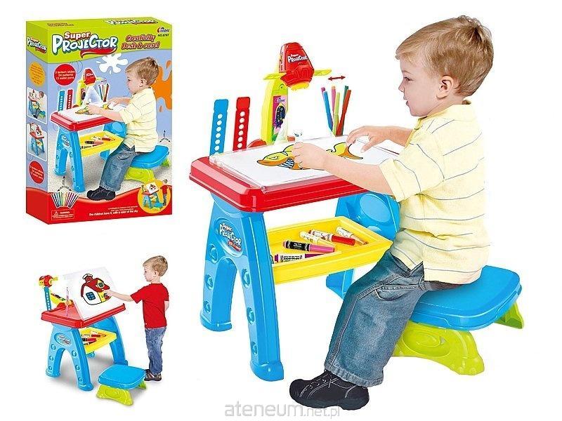 stół edukacyjny z projektorem na baterie, ze stołeczkiem, z zestawem flamastrów; 59,5x38,5x10cm, Box
