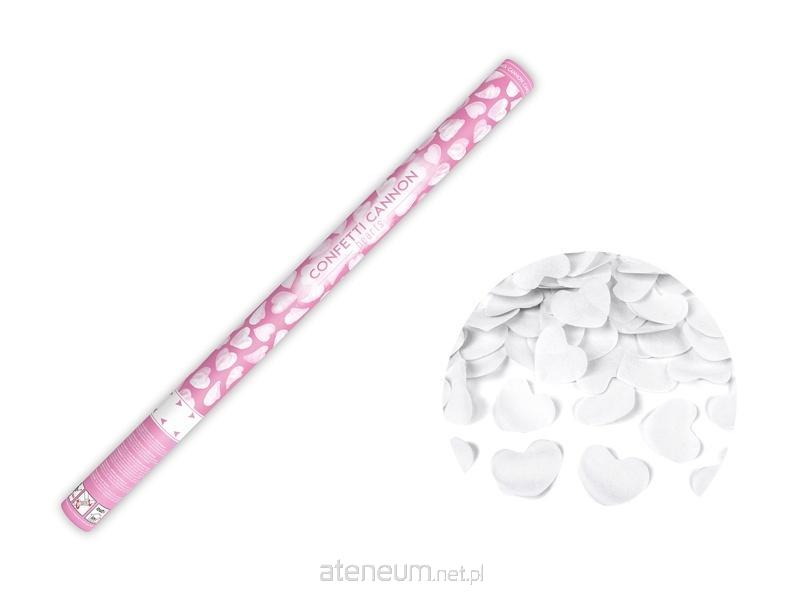 Tuba strzelająca bibułowymi sercami w kolorze białym, długość 80 centymetrów.