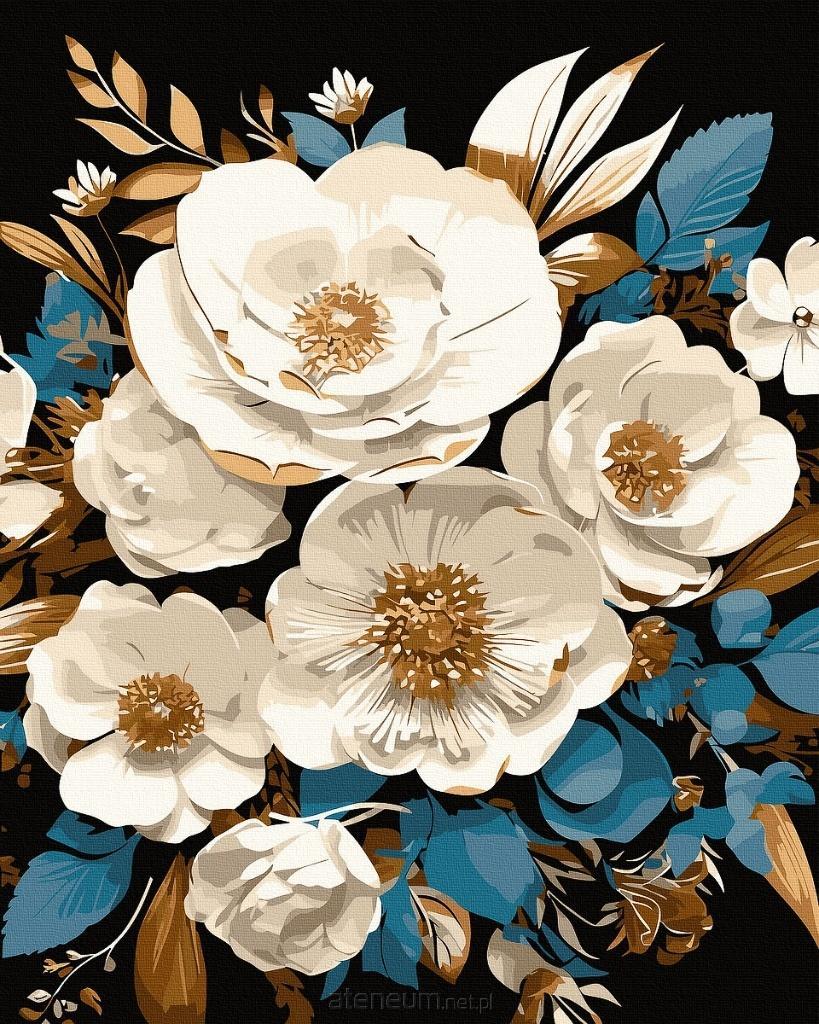 Zawiera: płótno na ramie, ponumerowane farby akrylowe, zestaw pędzli