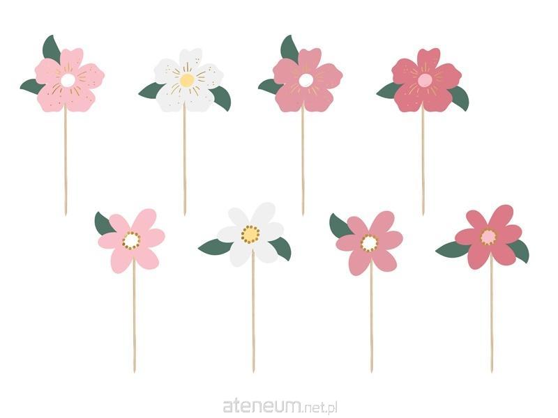 Toppery na tort Kwiaty, mix kolorów, zestaw zawiera 8 topperów na pikach, wysokość ok 13-14.5 cm.(1 op. / 8 szt.)