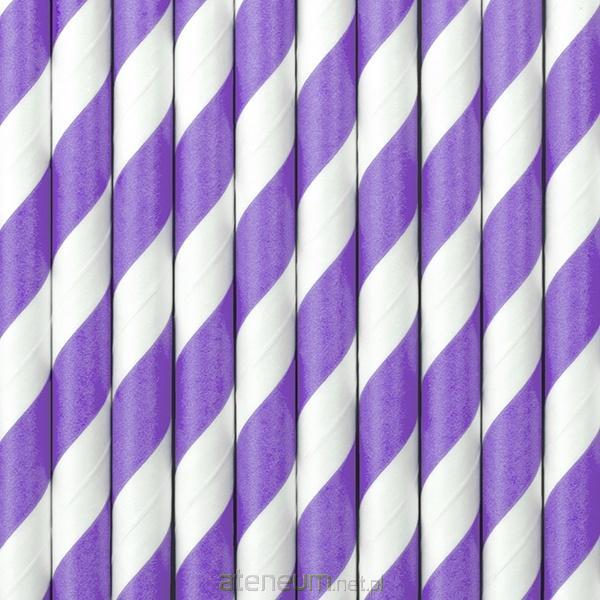 Słomki papierowe w kolorze liliowym z białymi ukośnymi paskami, długość około 19,5 centymetra.(1 op. / 10 szt.)