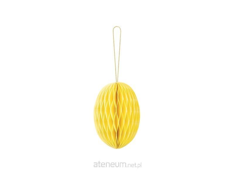 Dekoracja papierowa honeycomb Jajko w kolorze żółtym, wysokość ok. 12 cm.