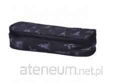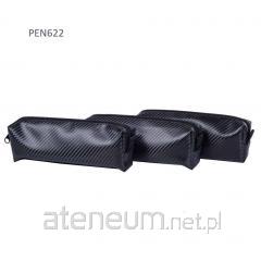 Piórnik utrzymany w tonacji klasycznej czerni z delikatnie tłoczoną złotą ramką