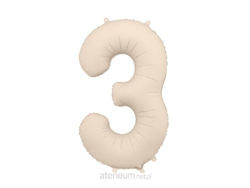 Balon foliowy matowy Cyfra 3 w kolorze jasnobeżowym, rozmiar przed napompowaniem ok. 100 cm (39''), rozmiar po napompowaniu ok. 86 cm (34''). Do napompowania powietrzem i helem. Zestaw zawiera słomkę. Balon jest samouszczelniający się. Posiada haczyki ułatwiające montaż balona do dekoracji.
