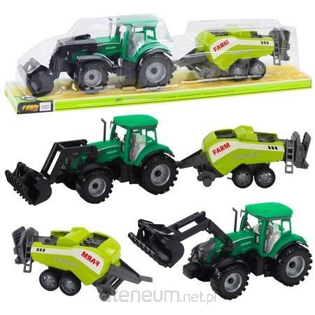 ZIELONY TRAKTOR Z ŁADOWACZEM I PRASĄ ROLNICZĄ Zielony traktor z prasą rolniczą to doskonała propozycja dla małych miłośników maszyn i życia na wsi. Realistycznie odwzorowany zestaw łączy w sobie klasyczny zielony traktor z ruchomym ładowaczem oraz doczepianą prasą do słomy. Całość wykonana została z wytrzymałego tworzywa sztucznego, dzięki czemu świetnie sprawdzi się zarówno w domu, jak i podczas zabawy na świeżym powietrzu. Elementy pojazdu zostały zaprojektowane z dbałością o szczegóły - od tekstury opon po ruchome ramię ładowacza i detale prasy. To idealny sposób, by dziecko mogło wcielać się w rolę rolnika, rozwijać wyobraźnię i tworzyć własne scenariusze pracy na farmie. Pojazdy są lekkie, bezpieczne i łatwe do prowadzenia nawet dla najmłodszych użytkowników. Zabawka wspiera rozwój zdolności manualnych i koordynacji ręka-oko, a jednocześnie dostarcza mnóstwo radości z zabawy. SPECYFIKACJA: Kolor traktora: zielony Wymiary traktora z prasą: 48 cm x 12 cm x 10,5 cm Wymiary opakowania: 55 cm x 14 cm x 12 cm Materiał: tworzywo sztuczne Elementy ruchome: ładowacz, przyczepa (prasa) ZAWARTOŚĆ ZESTAWU: Zielony traktor z ruchomym ładowaczem Prasa rolnicza (doczepiana przyczepa) Oryginalne opakowanie